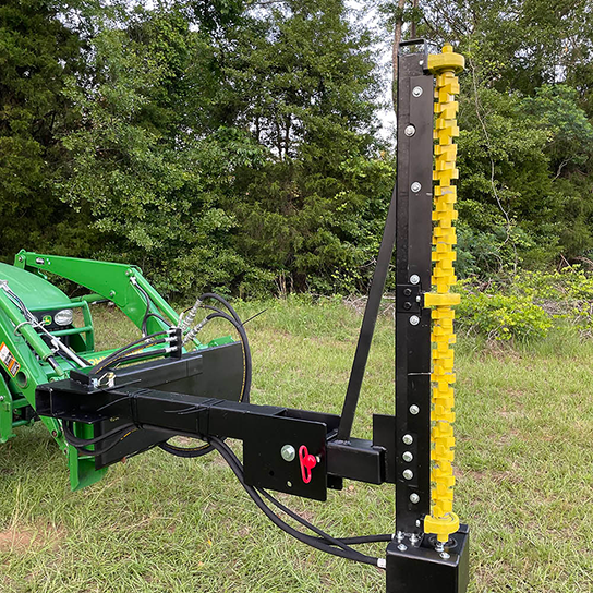 With a vertical reach of up to 200 inches and a 90-degree swing from center using a simple pin-drop mechanism, the Baby Beaver 4TR allows operators to position the cutter exactly where it’s needed—ideal for clearing overhang, trimming fence lines, and reaching into tight or awkward areas. Despite its smaller footprint, the 4TR has the strength to cut limbs up to 3 inches in diameter, providing dependable performance for municipalities, farmers, landowners, and grounds crews alike.